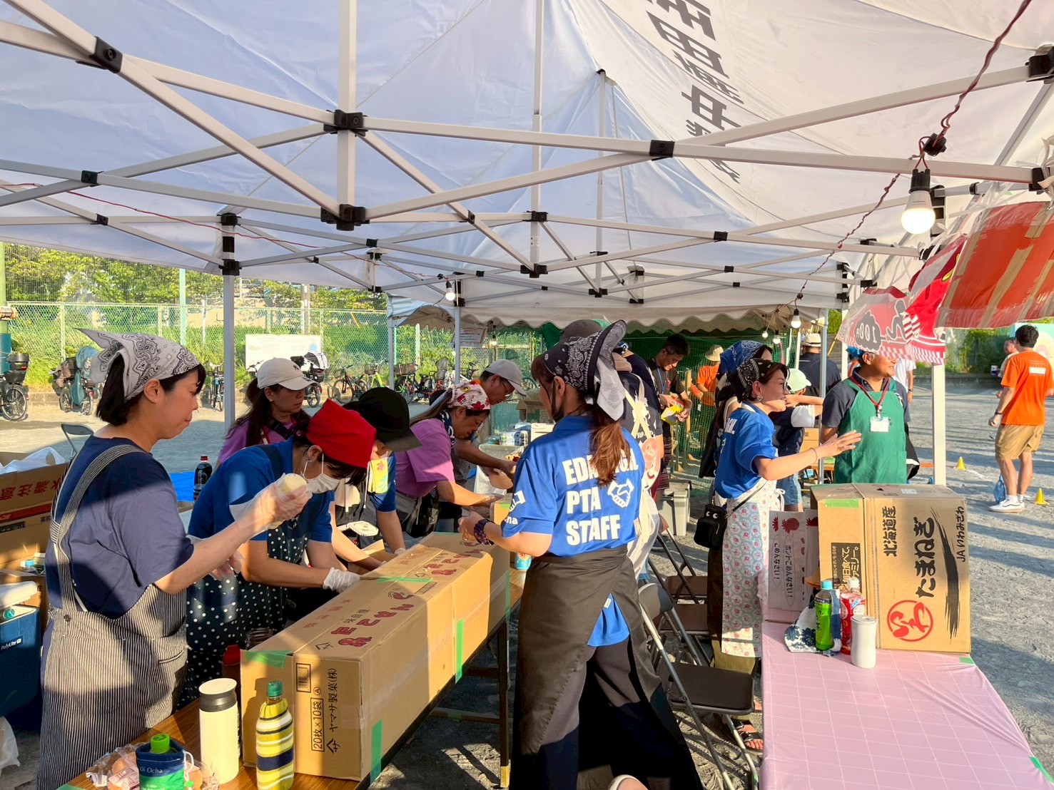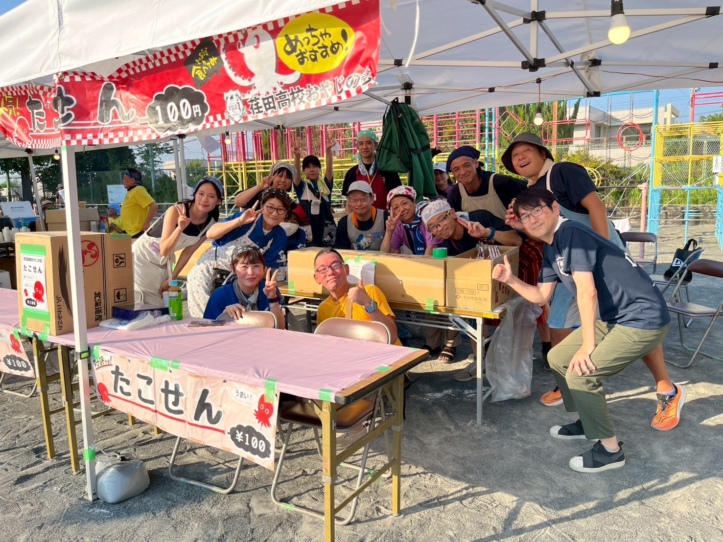 荏田南自治会連合が主催する夏祭りに、荏田高校 おやじの会として屋台を出しました。 恒例のたこせんを販売。初日は、18時台早々に予定数を全て売り切りました。 お陰様で1日目316食、2日目307食のタコせんを無事に売り切りました。 今年は天候に恵まれた事に加えてお祭りのお客さんが多かったので怒涛の忙しさの中、2日目は1時間以内に売り切れてしまいました。 完売の後は打ち上げもできて忙しいながら楽しい時間でした。 夏祭りにお手伝いいただいた皆さま、暑い中大変お疲れ様でした!